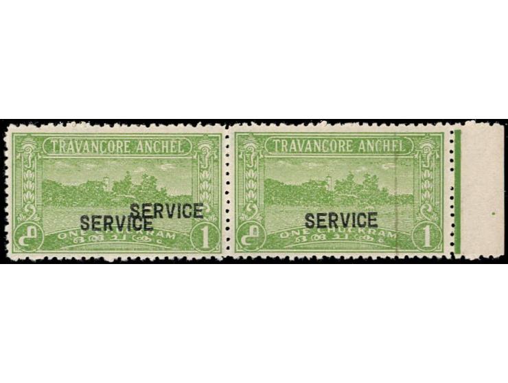 1941-42 1ch horizontal marginal pair overprinted SERVICE with error, overprint double on left stamp. Unused without gum as issued.