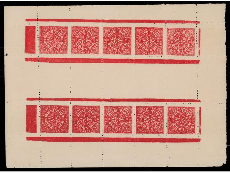 1886 Uncut pane comprising of two sheets of the 4a in orange-red. Most sheets were cut down into single sheets; as such, rare in this format. Unused without gum as issued. Ex. Dr. E.D. Pereira collection. 2025 ISES certificate.