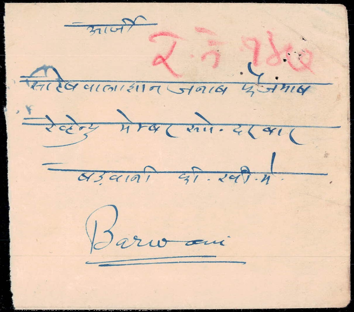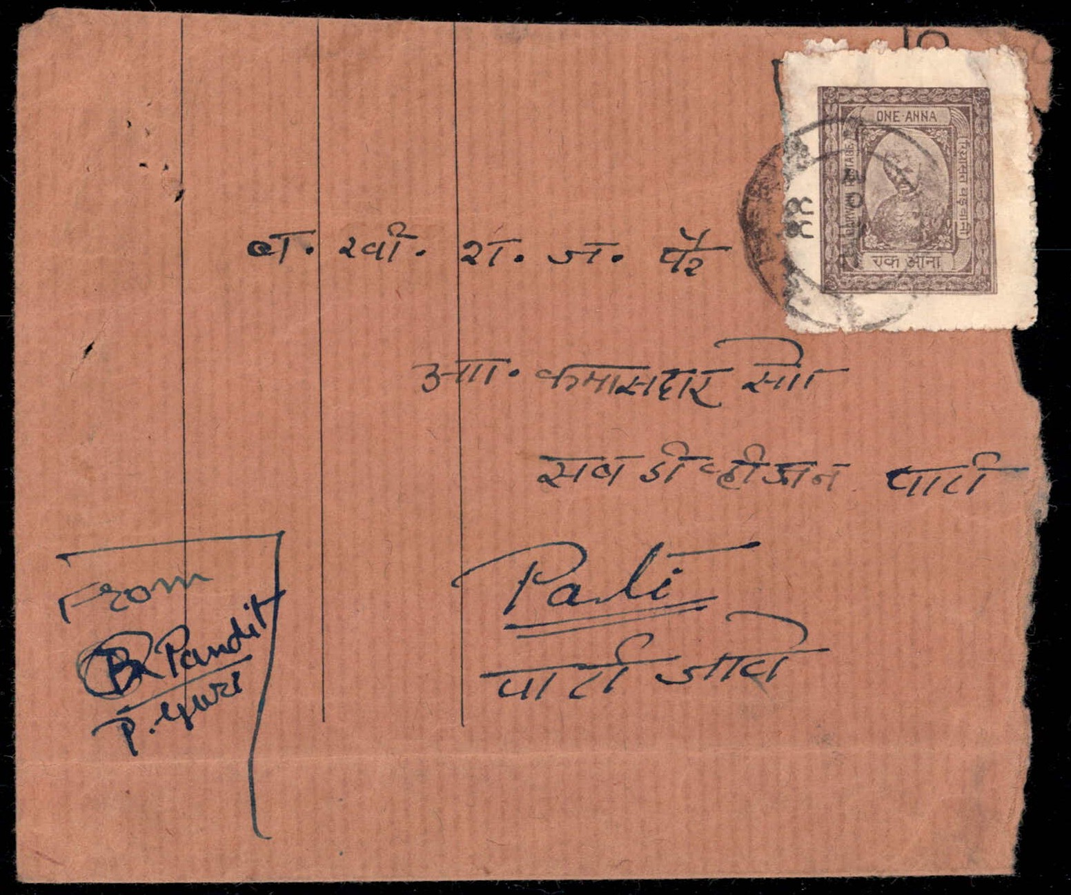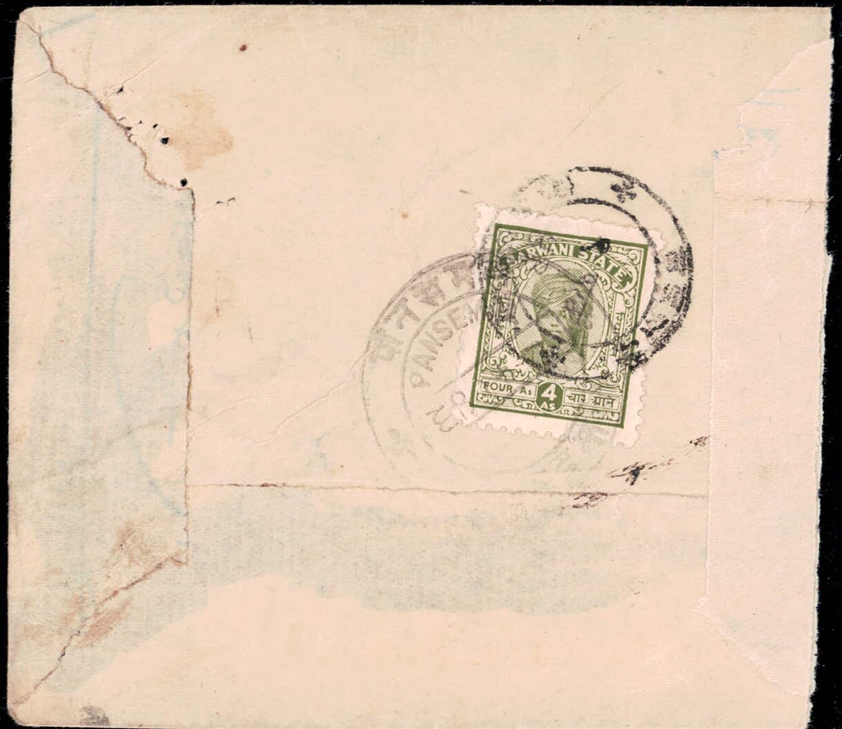 1945-47 4a olive-green used on local registered cover from Pansemal to Barwani