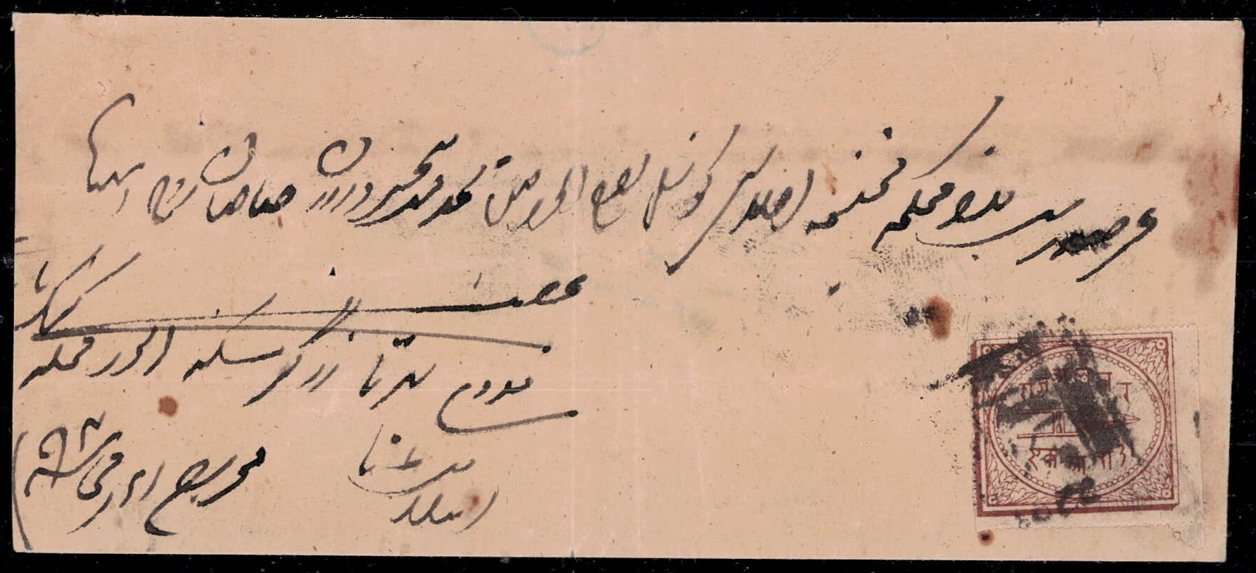 1877 1a pale yellowish brown on local cover tied by Alwar square cancel