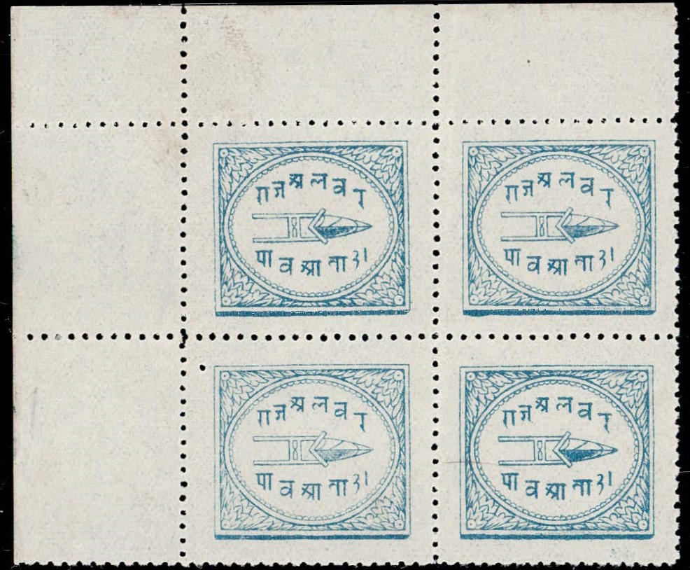 1899 ¼a slate-blue top left corner marginal block of four. Unused without gum as issued.