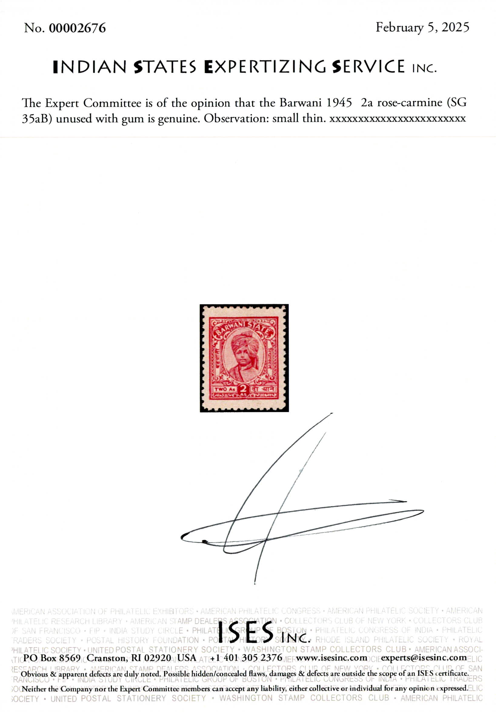 1945 2a rose-carmine, minute thin. 2025 ISES certificate.