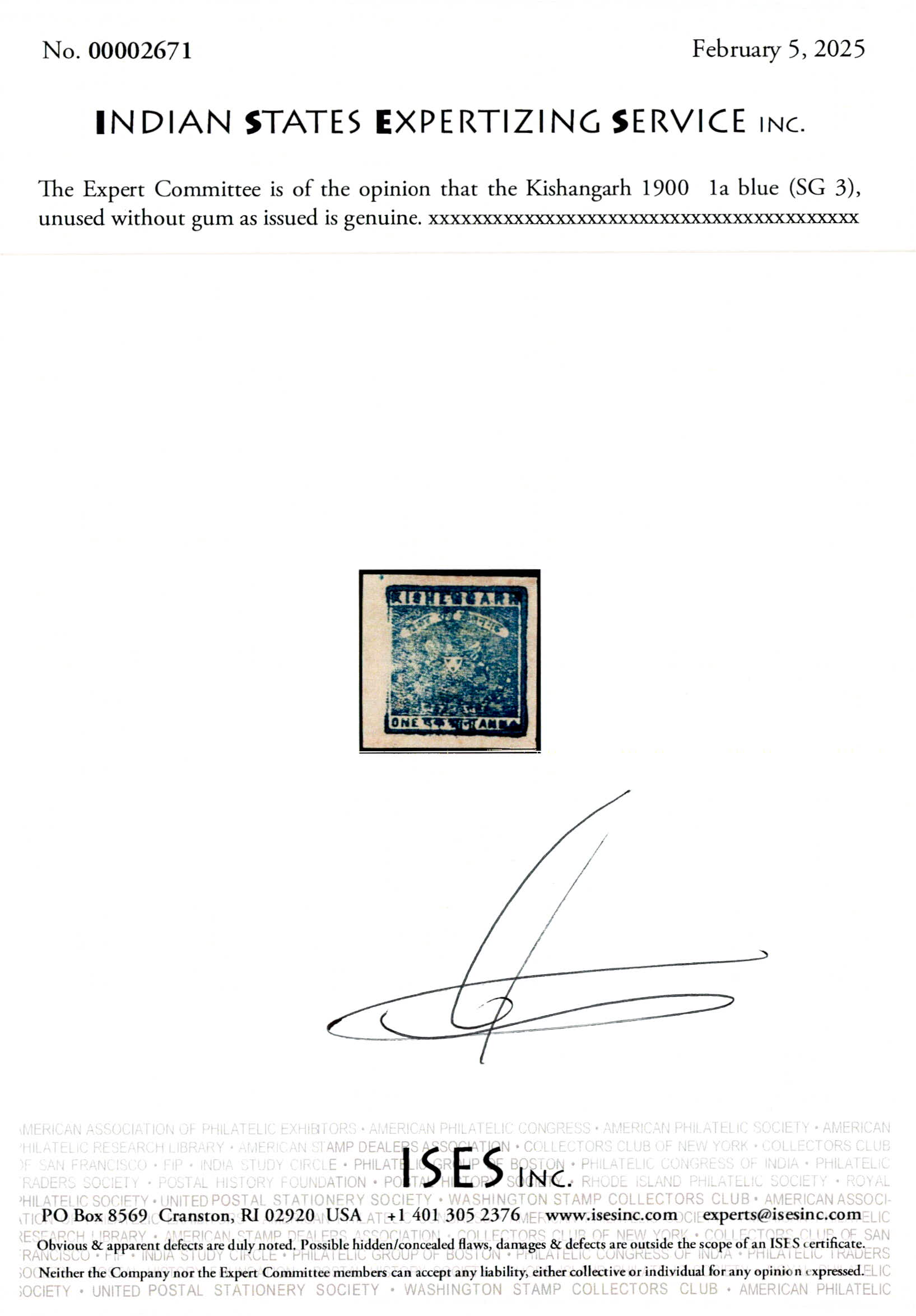 1900 1a blue. Unused without gum as issued. 2025 ISES certificate.