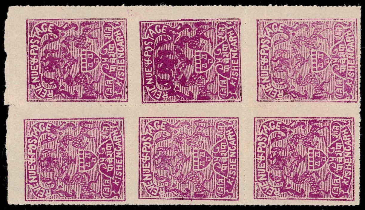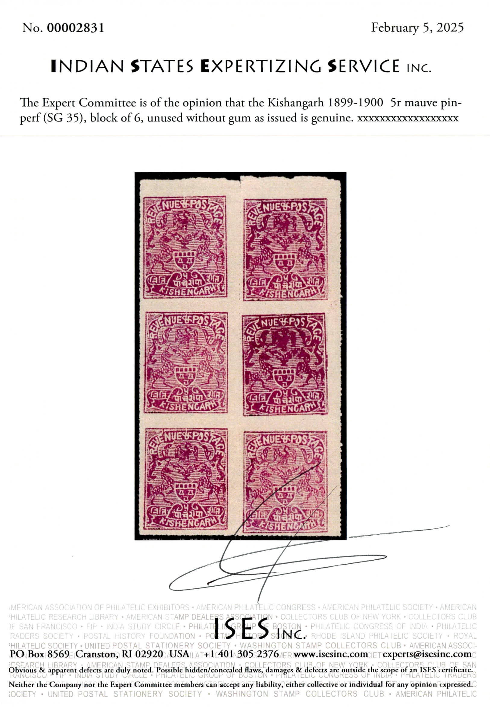 1899-1900 5r mauve pin-perf, block of 6. Unused without gum as issued. 2025 ISES certificate.