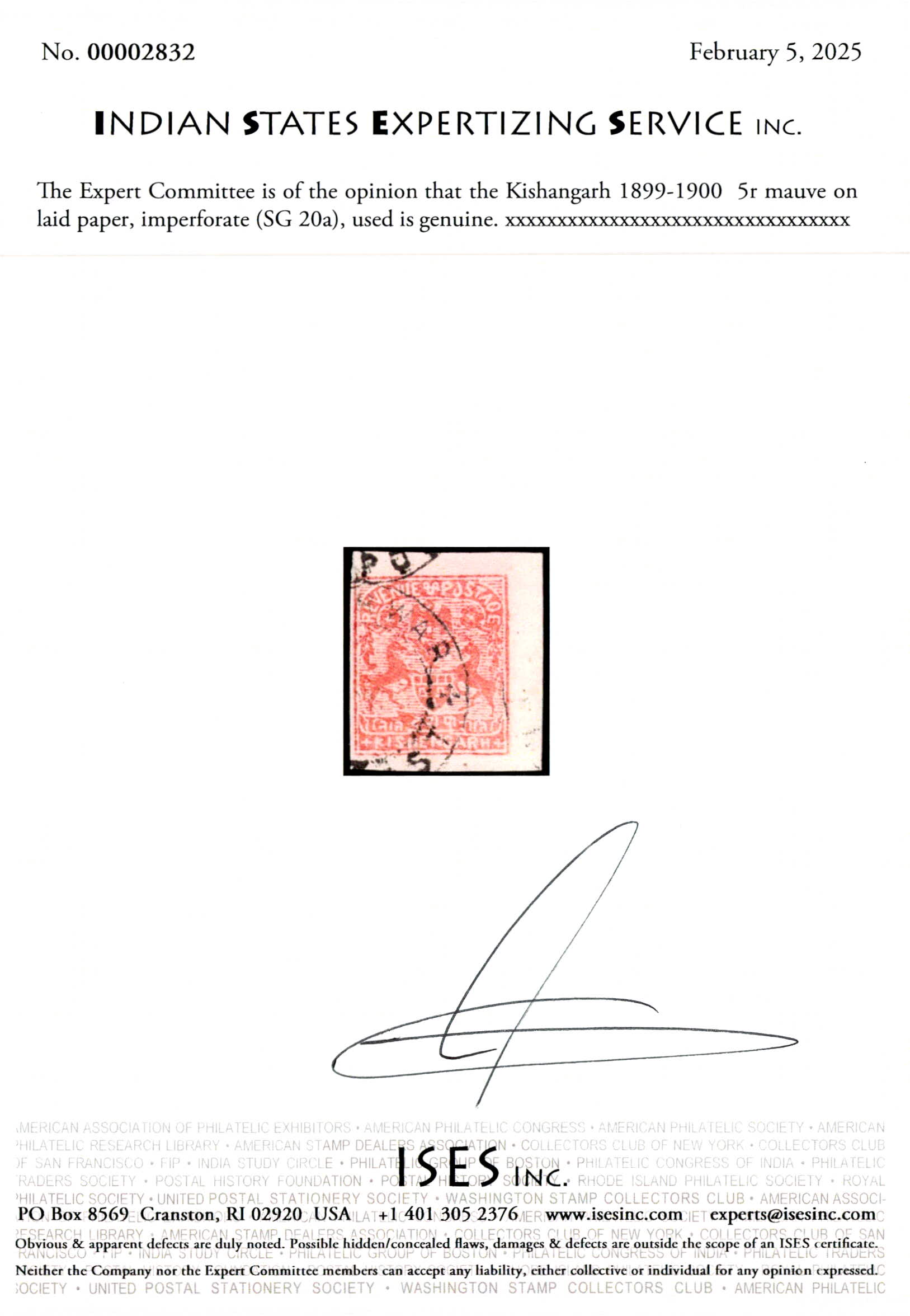 1899-1900 5r mauve on laid paper, imperforate. Unpriced used. 2025 ISES certificate.