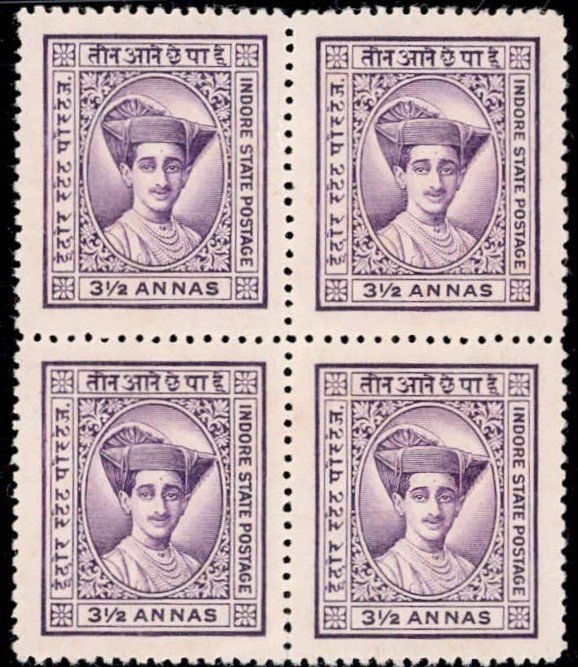 1934 3½a violet, block of four, minor gum disturbance on two stamps.