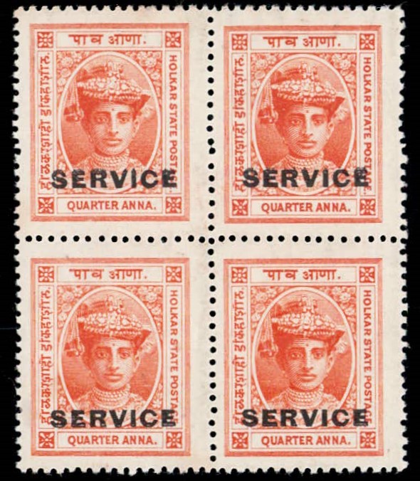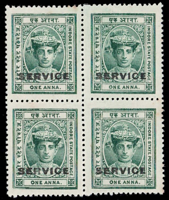 1904 1a green overprinted SERVICE, block of four. A couple of minute stain spots.