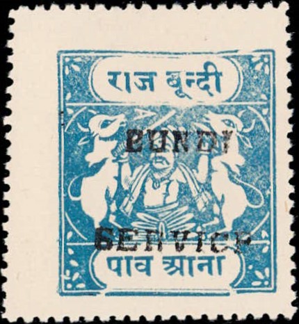 1941 ¼a greenish blue overprinted Bundi Service in small English SG Type O2 in black. Gum slightly toned.