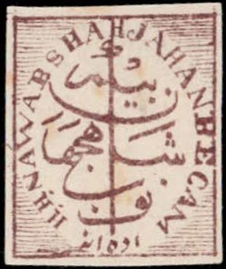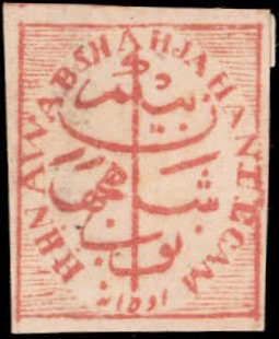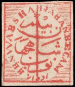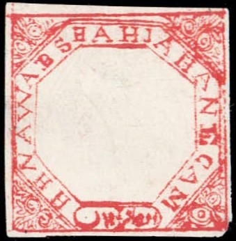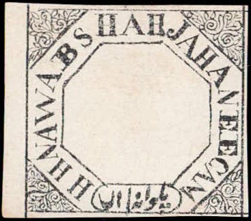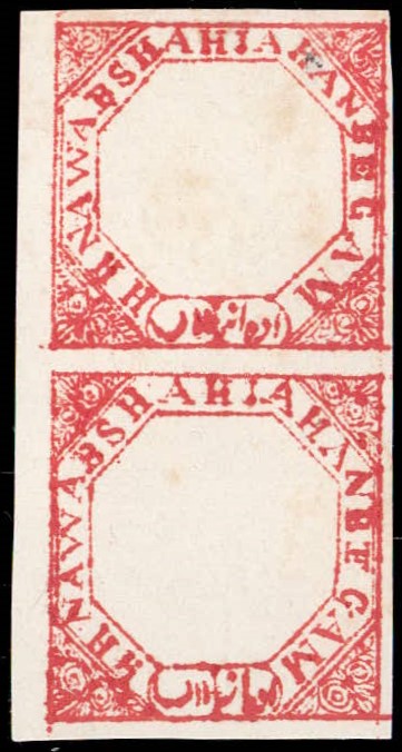 1878 ½a red imperforate with error, 'NWAB' instead of NAWAB, unused without gum as issued. Ex. Dan Walker collection.