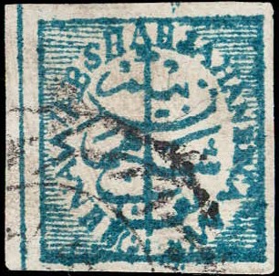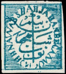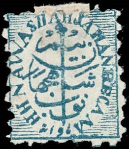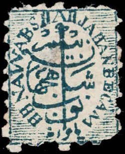1880 ¼a blue-green perforated with error, 'NAWA' instead of NAWAB, unused without gum as issued. Ex. Dan Walker collection.