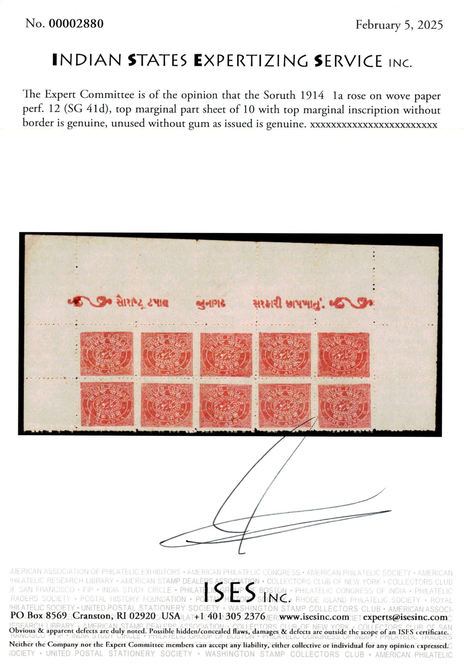 1878 ½a Indian-red imperforate, unused without gum as issued. This shade is not listed in SG. Ex. Dan Walker collection.