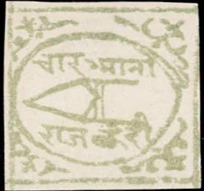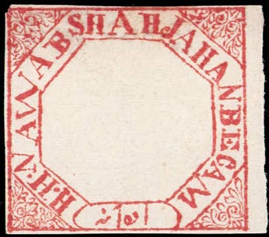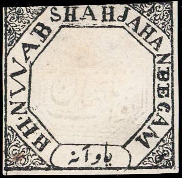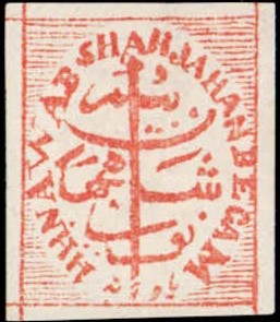 1881 ¼a black imperforate, with error, 'NWAB' instead of NAWAB. Unused without gum as issued. Ex. Dan Walker collection.