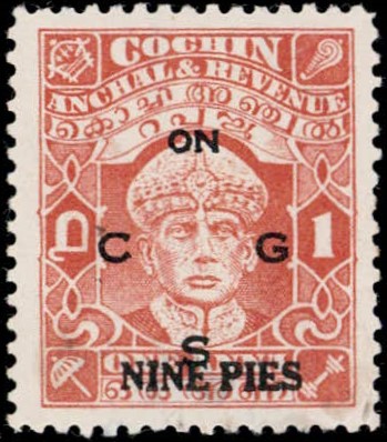 1942-43 1a brown-orange overprinted 'ON C G S' surcharged 'NINE PIES'. Used with faint cancel.