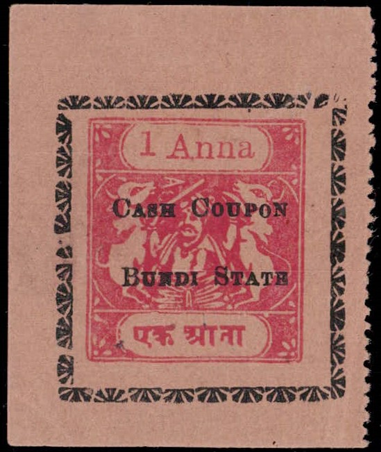 1a red & black overprinted 'CASH COUPON / BUNDI STATE' with serial number 17580 on reverse. Unused without gum as issued.