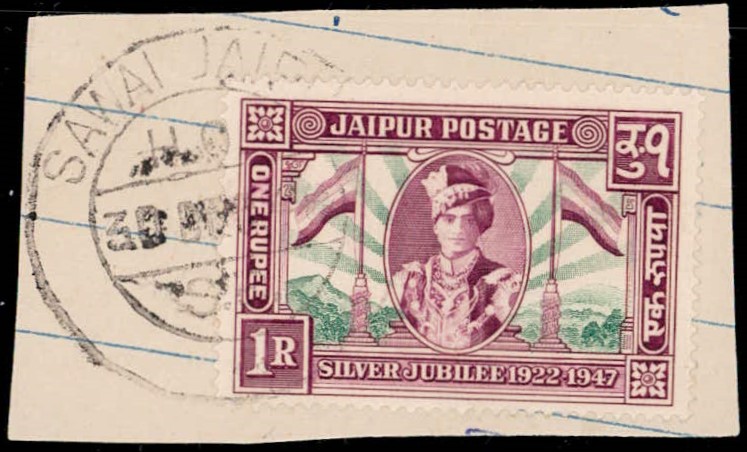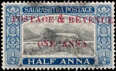 1949 ½a black & deep blue surcharged 'POSTAGE & REVENUE / ONE ANNA' with error, small 'O' in ONE. This error occurs once (Pos. 26) in a sheet of 40. Ex. Dr. E.D. Pereira collection.