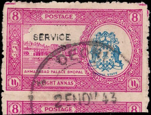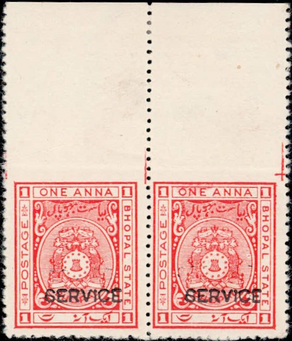 1936 1a scarlet overprinted SERVICE, horizontal top marginal pair with error, imperf between stamp and margin. Hinge on margin, stamps mint never hinged.