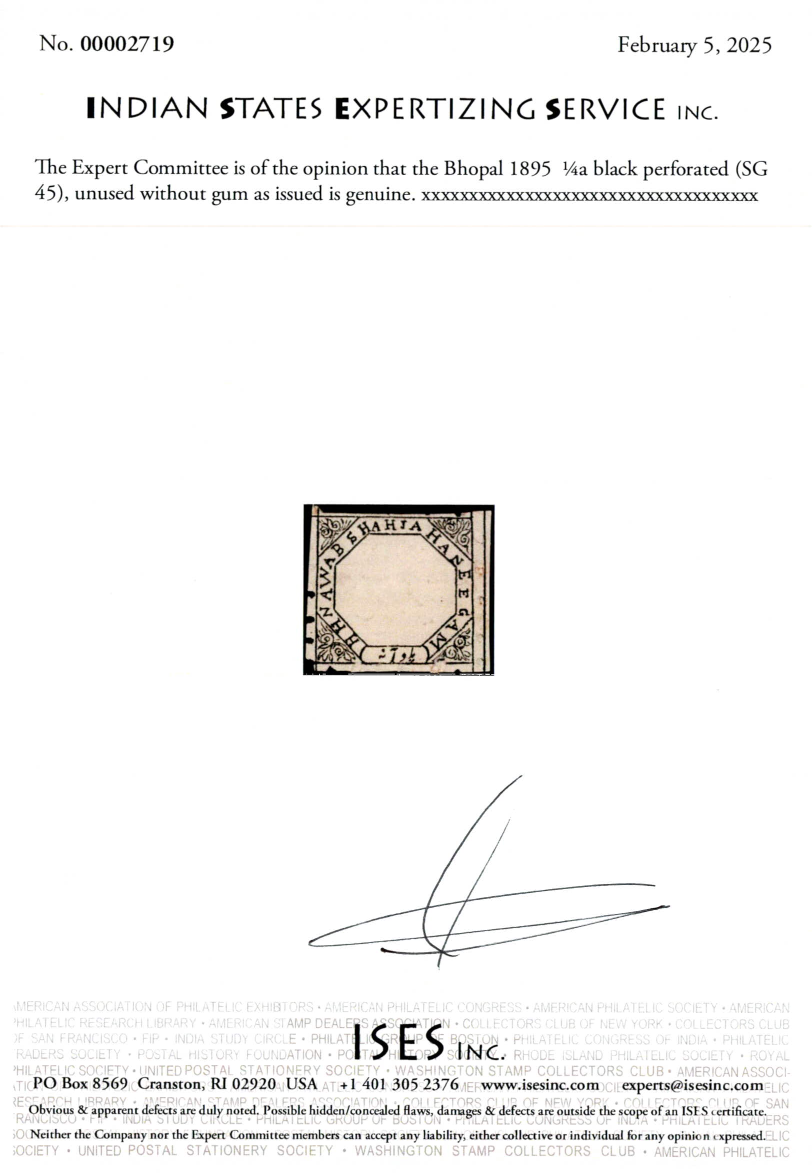 1895 ¼a black perforated. Unused without gum as issued. Ex. Dan Walker collection. 2025 ISES certificate.