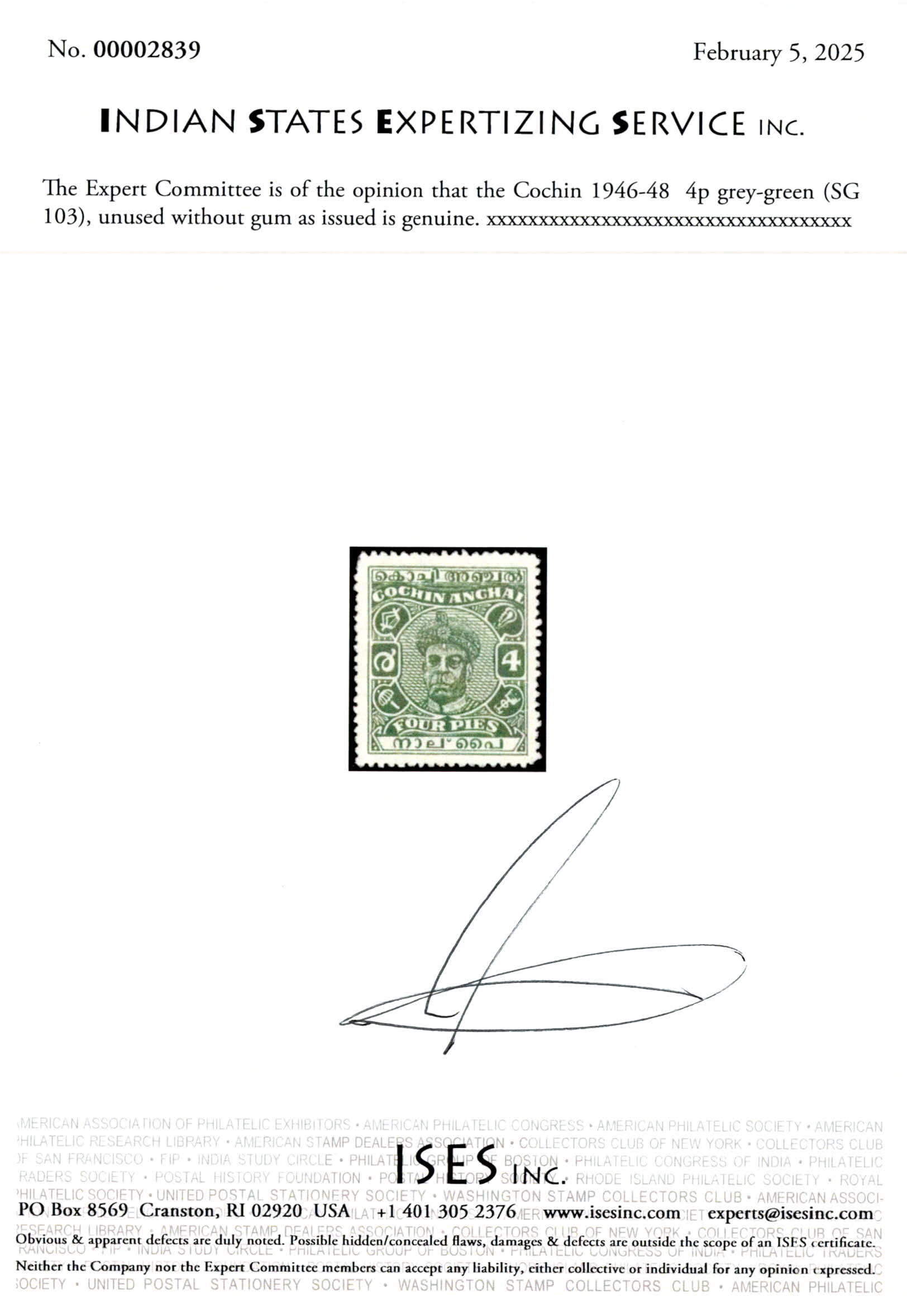 1946-48 4p grey-green. Unused without gum as issued. 2025 ISES certificate.