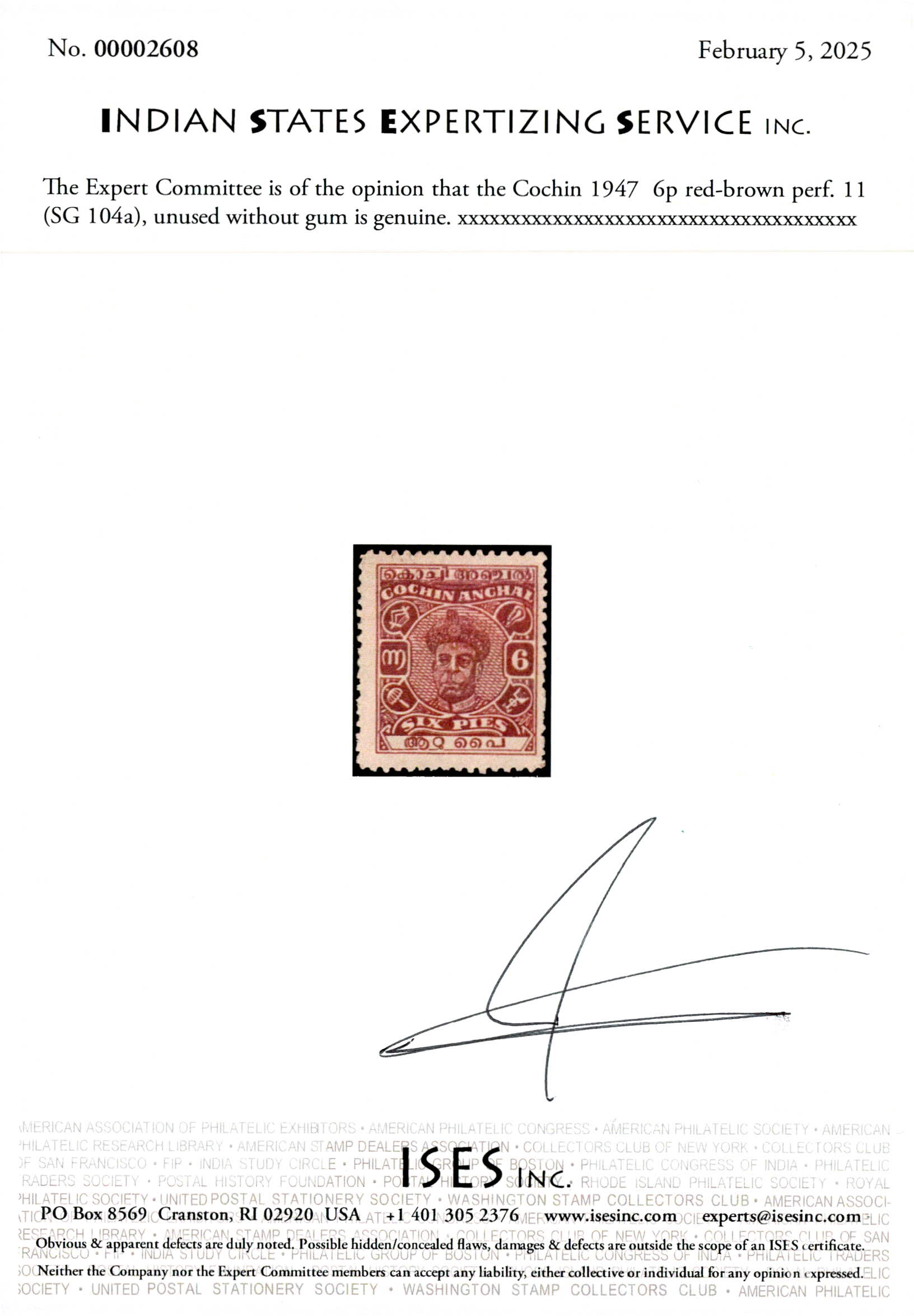 1947 6p red-brown perf. 11, unused without gum. 2025 ISES certificate.
