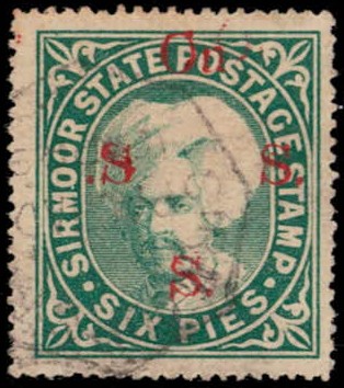 1890 6p green overprinted On S S S with SG Type 11 in red with error, stop before first "S"