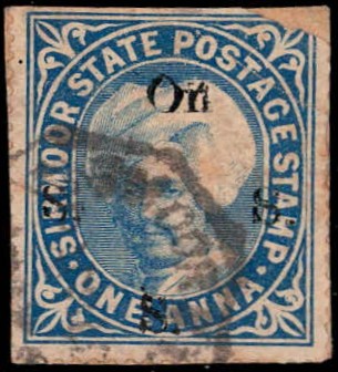 1891 1a bright blue overprinted On S S S with SG Type 12 in black. Used on piece with top perforations trimmed off and tear on top right. A very elusive stamp.
