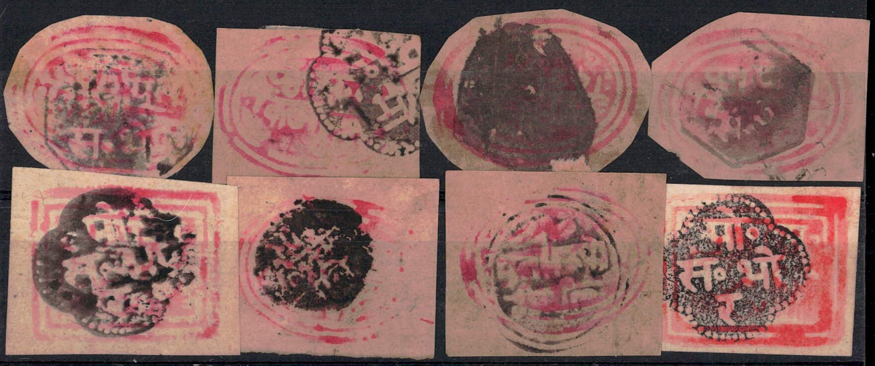 1879 ½ and 1 anna used with different types of obliterations, noted Nasrapur, Velhe, Pirangut, Bhor