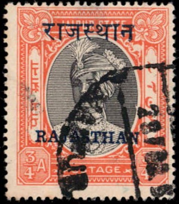 1949 Jaipur ¾a black & brown-red overprinted RAJASTHAN.