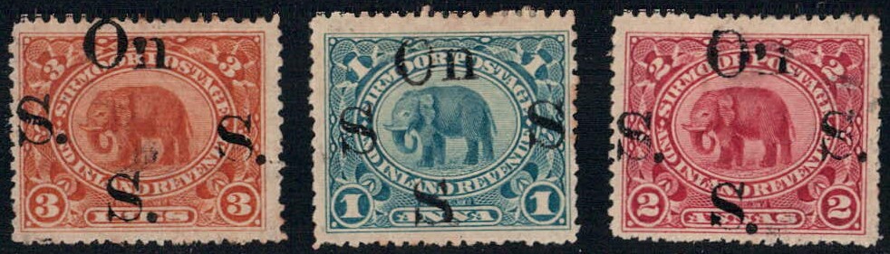 1894-99 3p, 1a and 2a overprinted On S S S with Type not listed in SG (see footnote in SG after SG 107). These overprints were made for collectors.