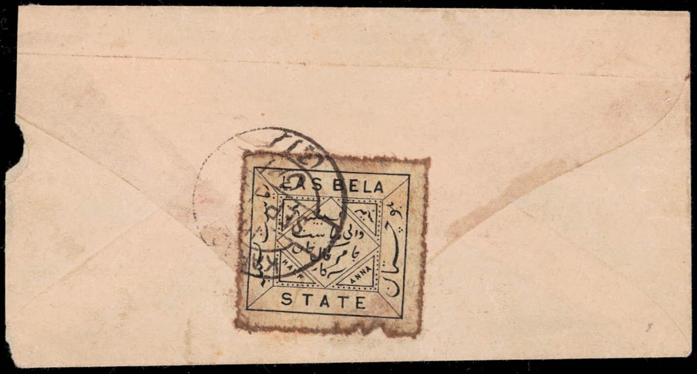 1897 ½a black on thick white wove paper perf. 11½ on local cover tied by Karachi cds. 2025 ISES certificate