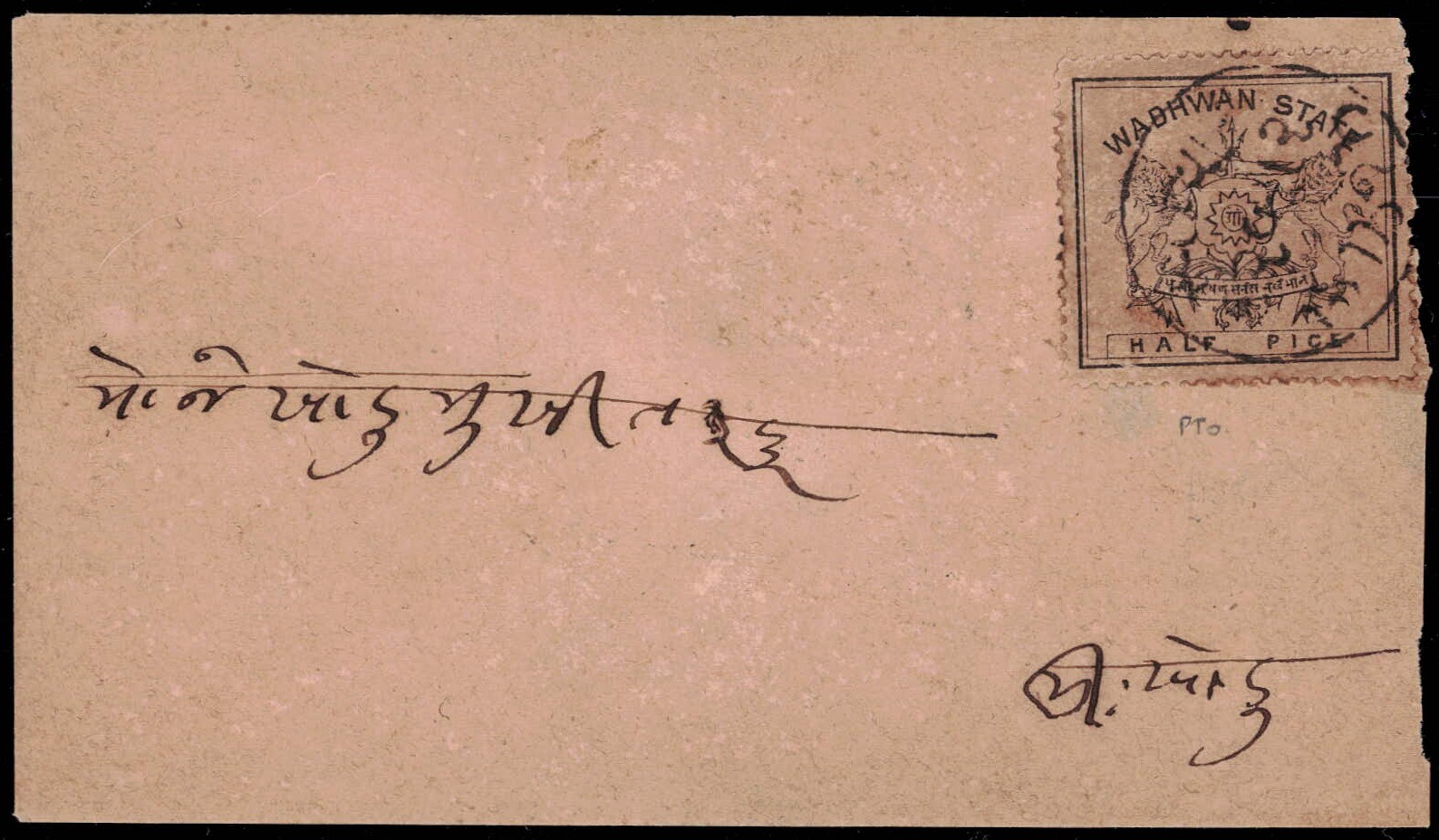 1878 ½a red imperf on local cover. Appears to be the earliest known cover bearing a Bhopal stamp. Ex. Dan Walker collection. 2025 ISES certificate.