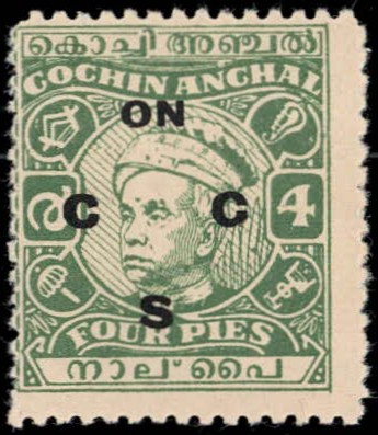 1948-49 4p green with error, "C" instead of "G" in ON C G S, Unused without gum as issued