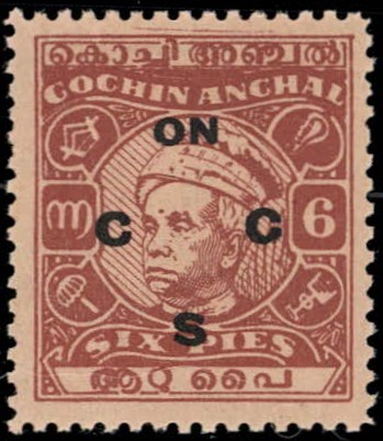 1948-49 6p chestnut with error, "C" instead of "G" in ON C G S, Unused without gum as issued