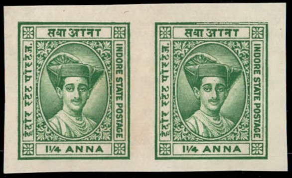 1933 1¼a green imperforate Plate Proof pair. Unused without gum as issued.