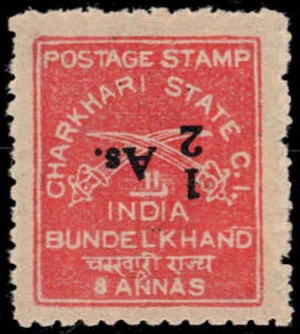 1939 8a brown-red with error, "½ As" surcharge inverted.