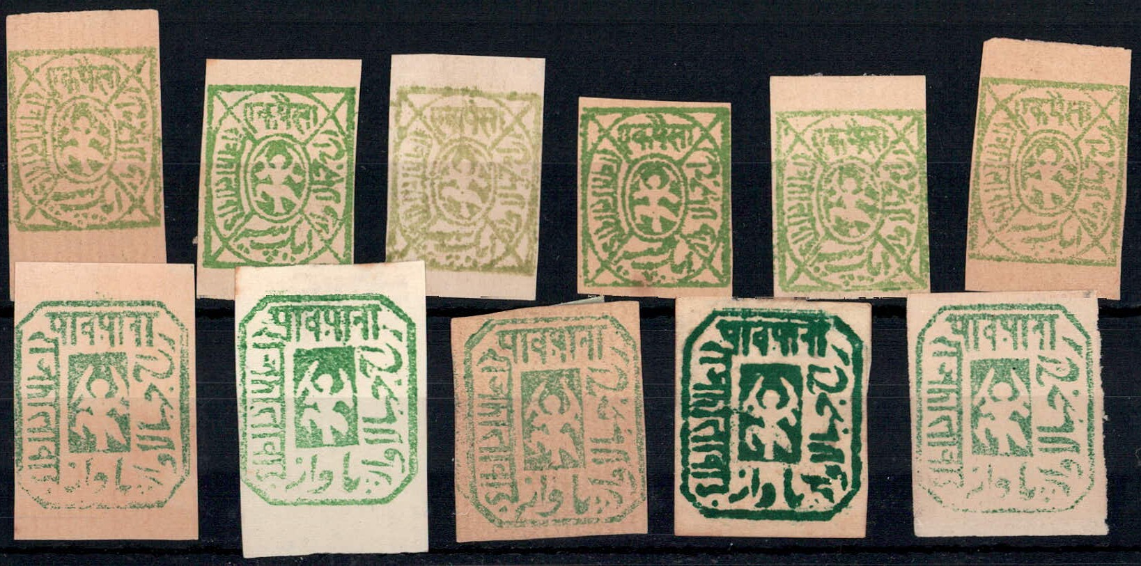1887-90 1 paisa (6) and ¼ anna (5). Unused without gum as issued