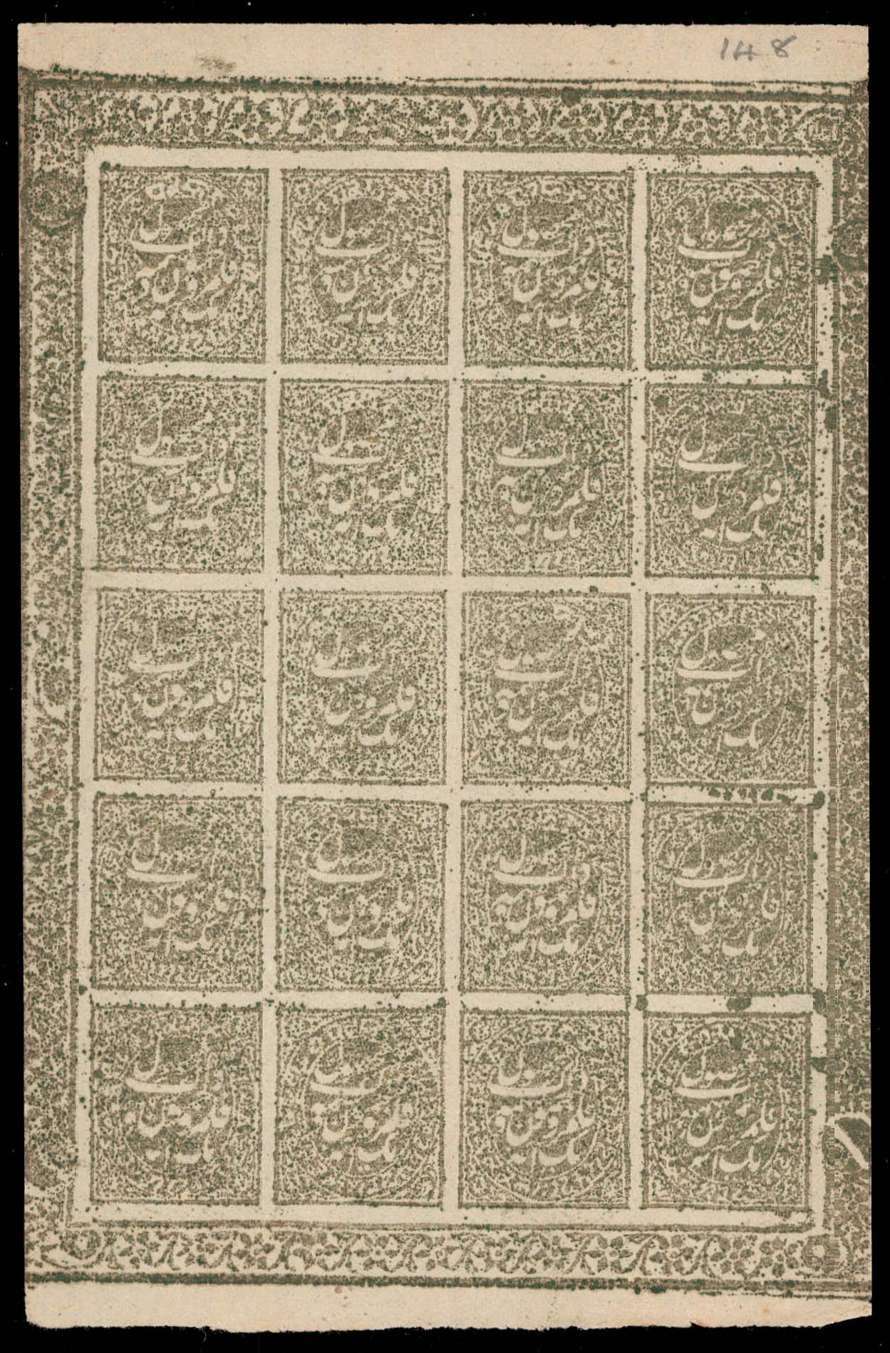 1883-94 1a olive-green (closest to the listed shade of greenish-grey) complete sheet of 20. Unused without gum as issued. Catalog value as singles £50+