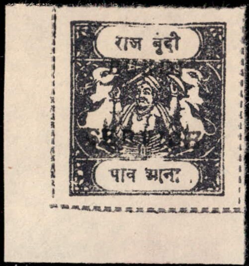 1915-41 ¼a ultramarine with inscriptions SG Type H overprinted Bundi Service in Devanagri in red. Unused without gum as issued.