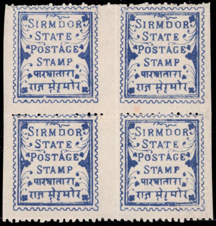 1929 1r black & pale blue overprinted SARKARI in vermillion with manuscript "cancelled" with initials of the postmaster in black ink. One sheet of each stamp was so inscribed by the postmaster and kept in the State treasury. With toned gum as always found due to the fact that these were in the State treasury until the 1970's. An important archival item of Soruth. 2025 ISES certificate