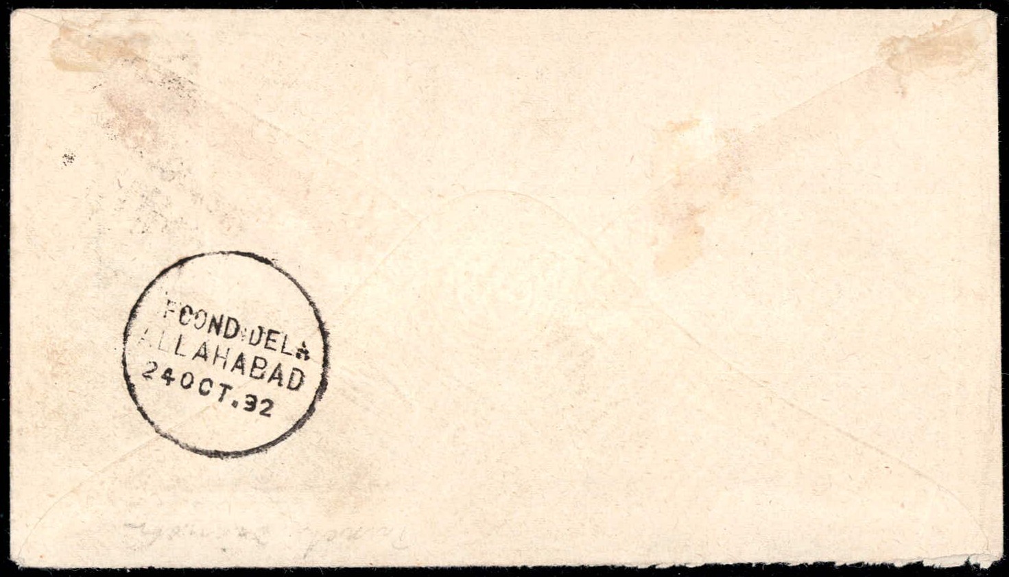 India ½a blue-green used alongside Poonch 1p black on white laid batonne paper tied by Kahuta squared circle cancel dated 21 Oct. 1892 with Allahabad delivery cds on reverse dated 24 Oct. 1892